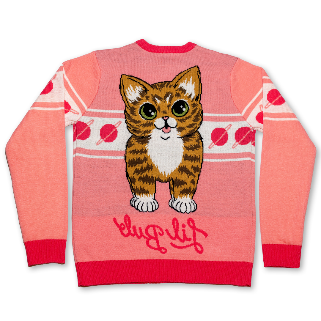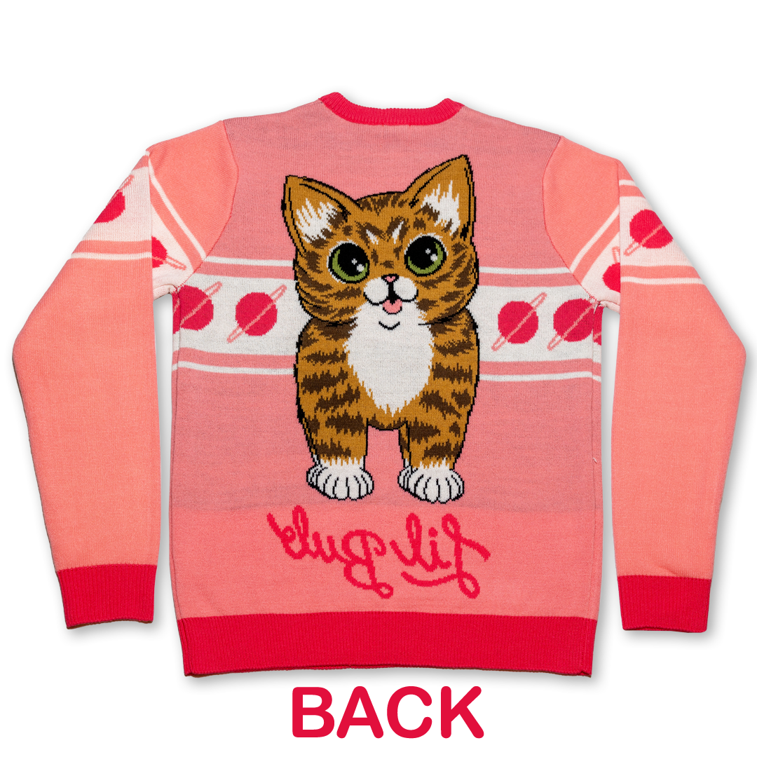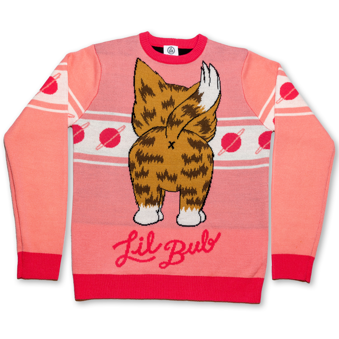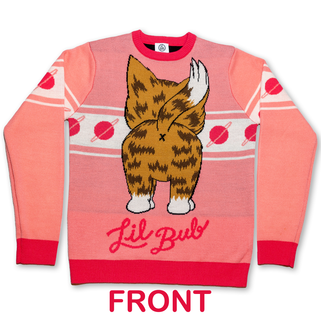 This revolutionary game-changing knit sweater features BUB's backside on the front and her frontside on the back. Be bold, buy this sweater.