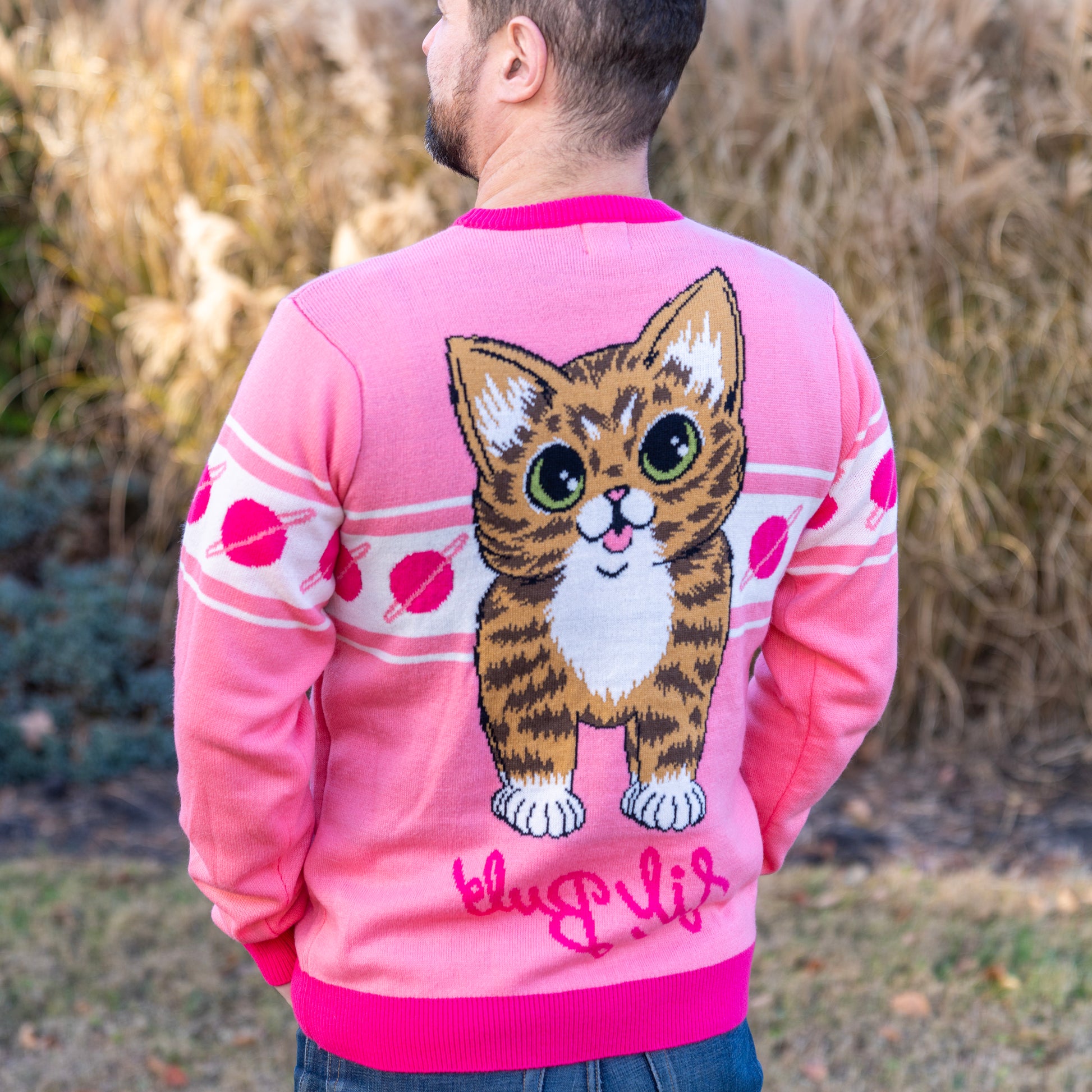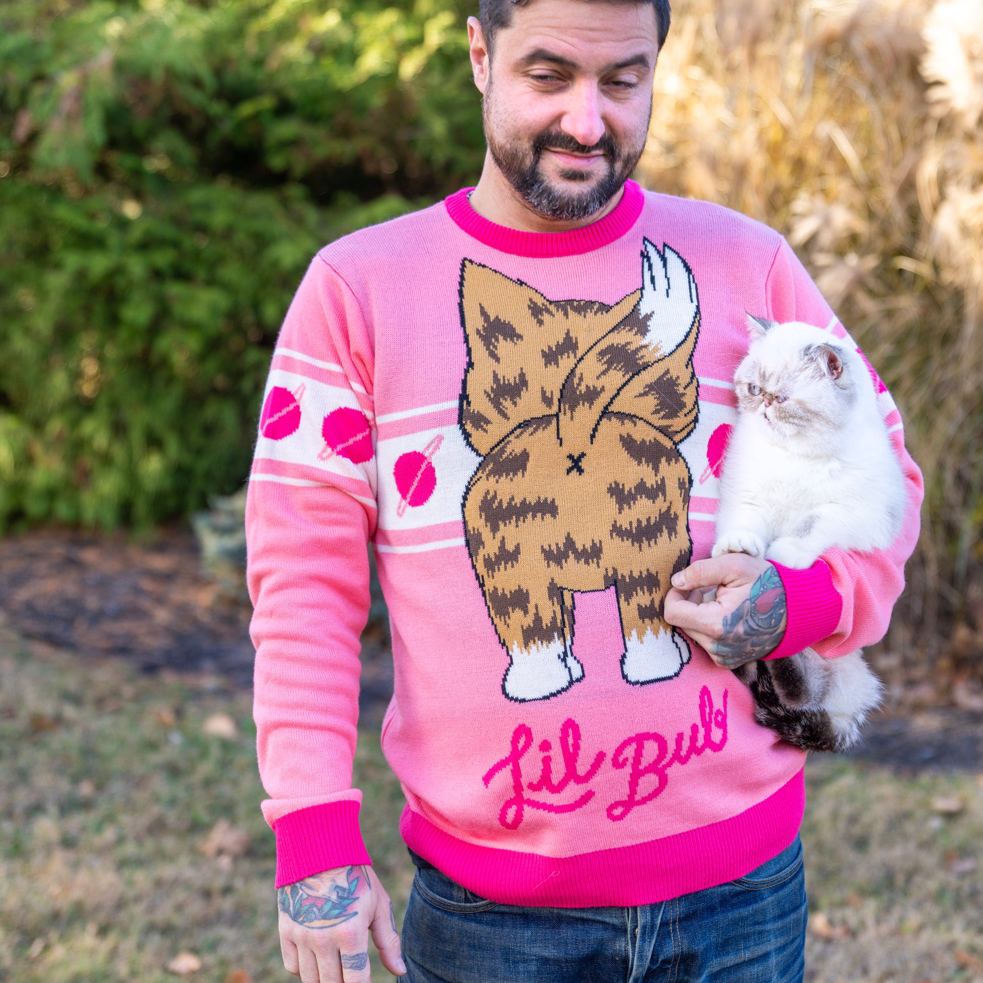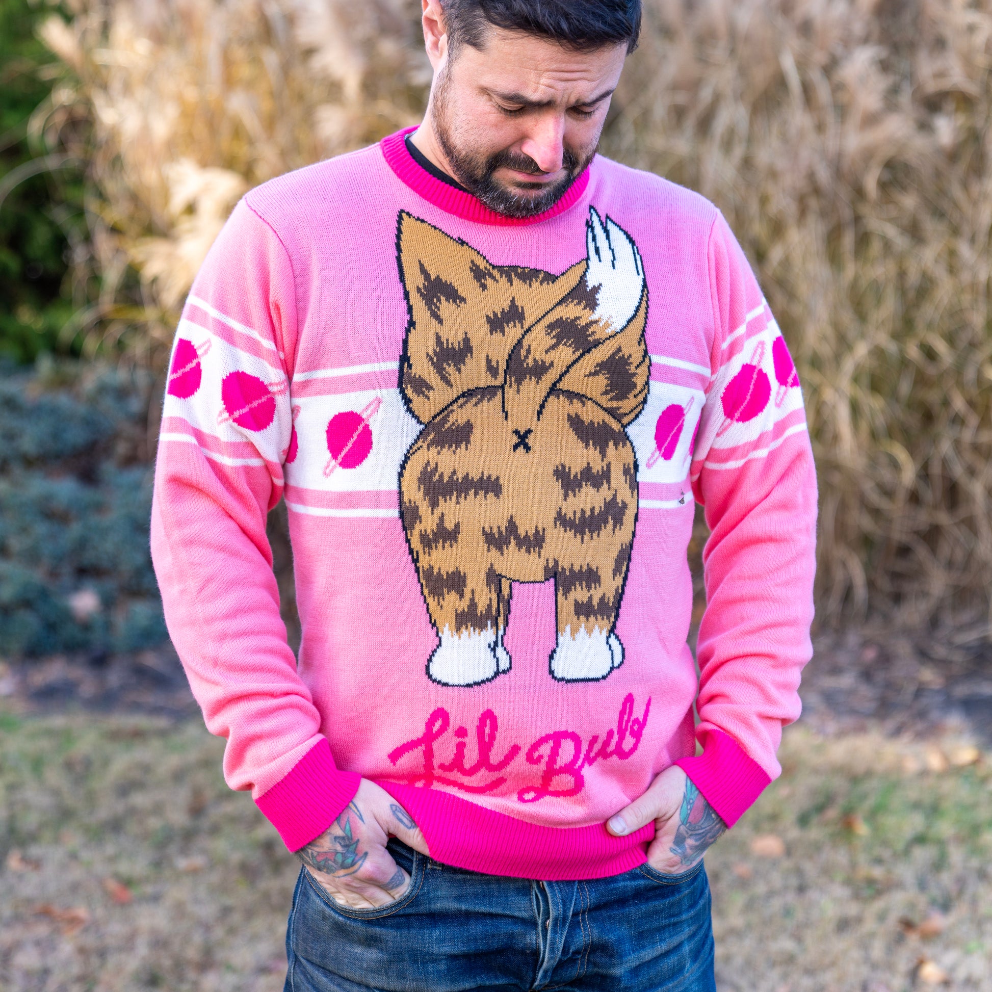 This revolutionary game-changing knit sweater features BUB's backside on the front and her frontside on the back. Be bold, buy this sweater.
